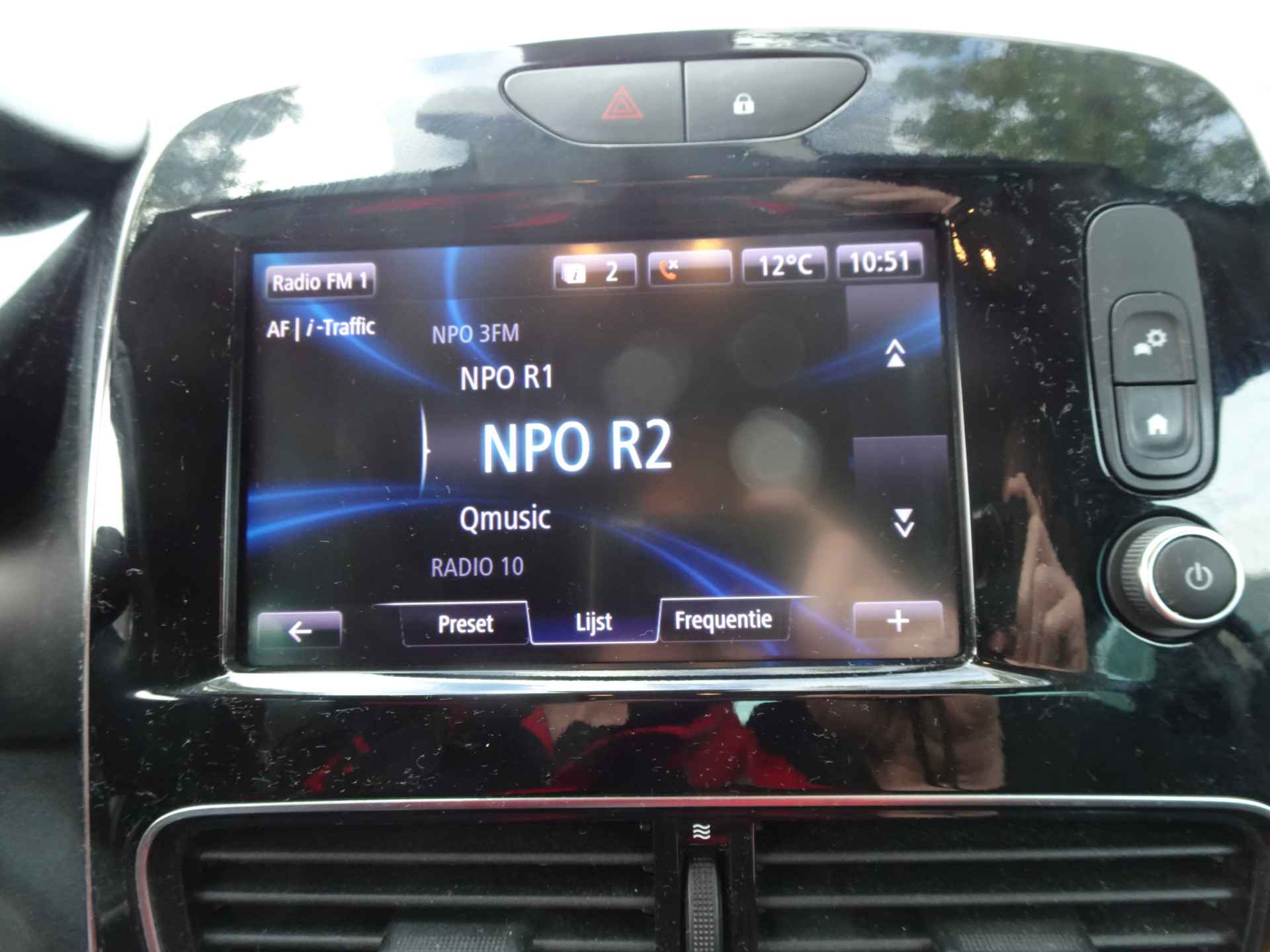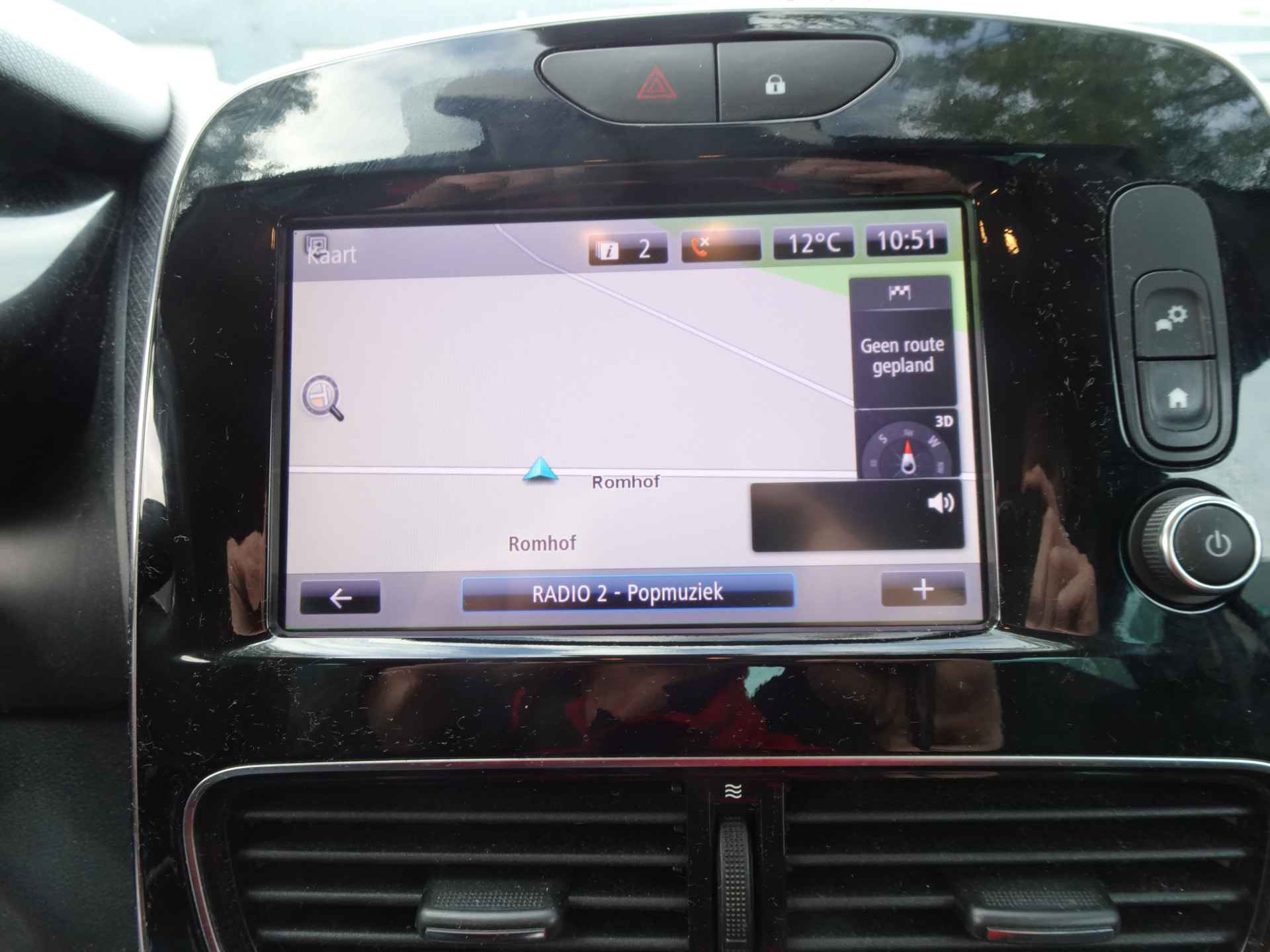Het navigatiesysteem en het audiosysteem (met DAB-ontvangst!) bedient u met knoppen op het stuur. Ook is de auto voorzien van automatische airconditioning. Parkeersensoren zijn een waardevolle toevoeging aan deze auto. De sensoren waarschuwen tijdens het parkeren en voorkomen schade aan de auto. Het drukke verkeer eist onderweg al uw aandacht op. Daarom is het goed dat deze Renault is voorzien van diverse systemen die u assisteren tijdens de rit. Een automatisch inschakelbare verlichting neemt het waar als het donker wordt of gaat schemeren, en schakelt dan automatisch de verlichting in. Op dezelfde manier "ziet" de regensensor de eerste spatjes regen en schakelt dan de ruitenwissers in, en als het harder gaat regenen zet hij de ruitenwissers ook in een snellere stand. Natuurlijk is deze Renault Clio voorzien van cruise control. De Renault is standaard voorzien van: keyless entry, buitentemperatuurmeter, centrale deurvergrendeling met afstandsbediening, boordcomputer, verstelbaar stuur en lederen versnellingspook.