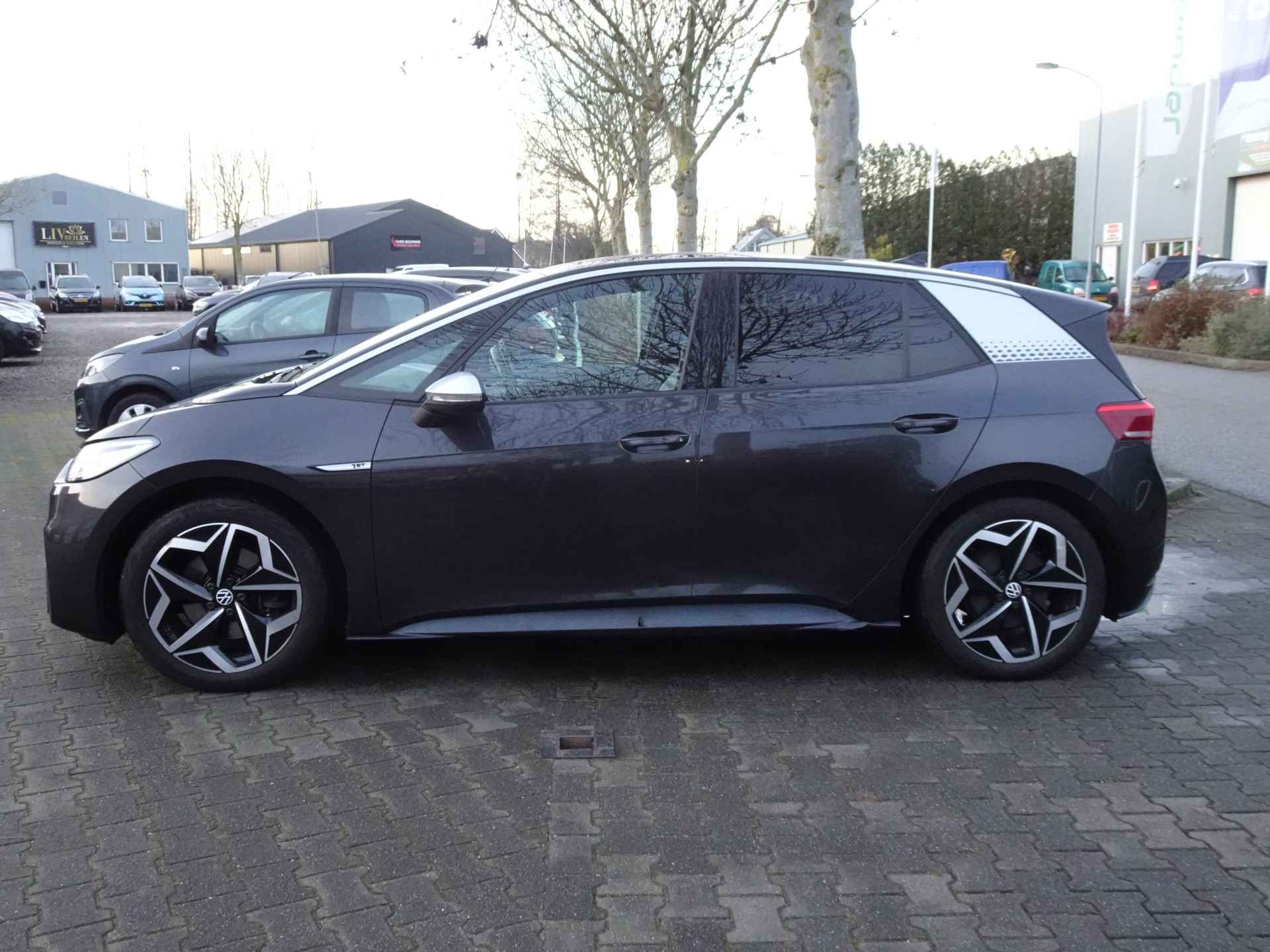 Dus u bent aan een nieuwe auto toe? Kom dan eens kijken naar deze Volkswagen ID.3. Het is een fraai gelijnde auto, uitgerust met belangrijke veiligheidssystemen en hij biedt veel comfort voor u en uw gezin. Fiscaal aantrekkelijk is de elektromotor, waarmee u niet alleen stil maar ook uitermate pittig kunt rijden. Niet voor niets is de vraag naar gebruikte Volkswagens zo groot, want de kwaliteit staat ook na een aantal jaren nog buiten kijf, zoals aan deze ID.3 duidelijk te zien is. De krachtige motor geeft deze Volkswagen uitstekende prestaties. 's Winters komen de verwarmbare voorstoelen heerlijk van pas. De koplampen zijn voorzien van matrix LED-verlichting waarmee u aanzienlijk verder kan kijken in het donker. Het systeem past zelf de lichtstraal aan op het moment tegenliggers verblind kunnen worden. Bij de uitrusting van deze auto horen onder meer 19 inch lichtmetalen velgen, donker getint glas achter, in delen neerklapbare achterbank, LED-achterlichten en snelheidsafhankelijke stuurbekrachtiging.